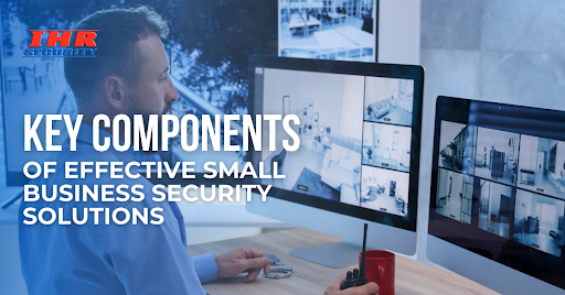 Most setups need alarms, cameras, access control, and small business security systems with monitoring.